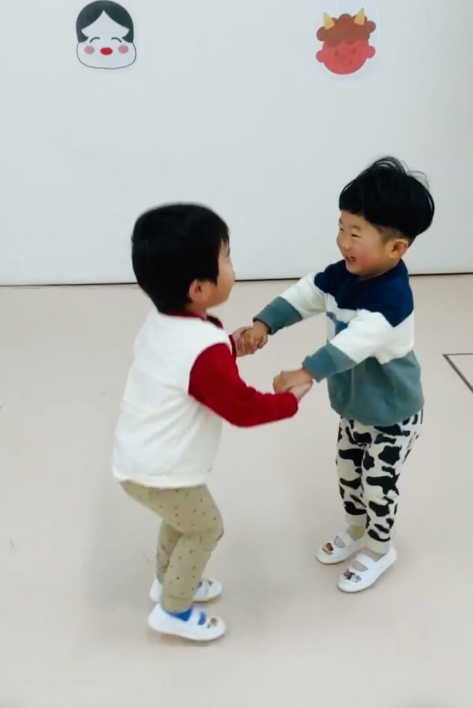 2〜3歳のお友達は、この間初めてお友達同士で手をつないでジャンプジャンプしてみたら、とっても上手にできました☺️