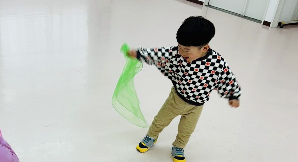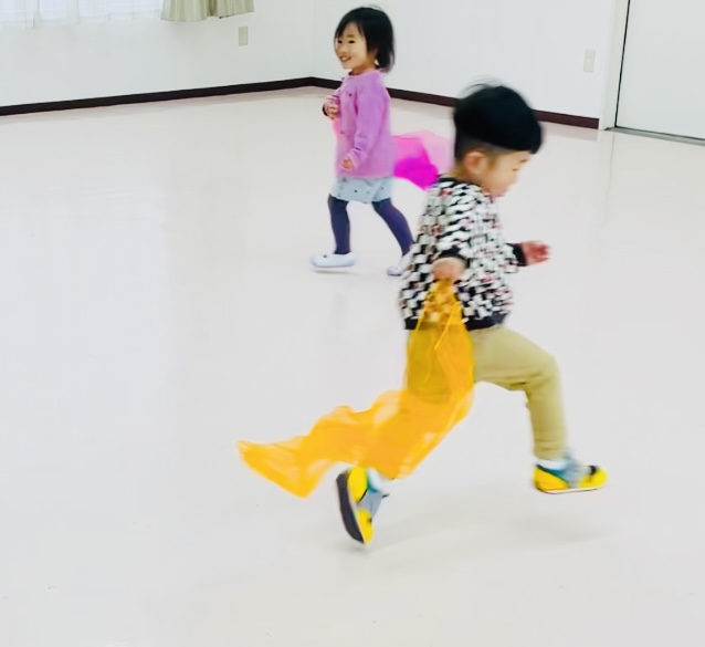 寒い冬はお外でもなかなか遊べず運動不足になりがちですが、スカーフを使ってたくさん身体を動かしながら楽しみました!