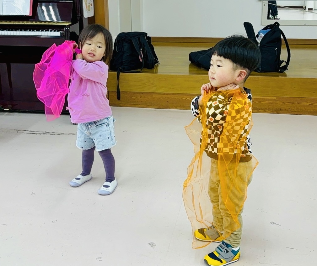 3.ピアノの音が3拍子に変わったらスカーフをゆらゆら〜